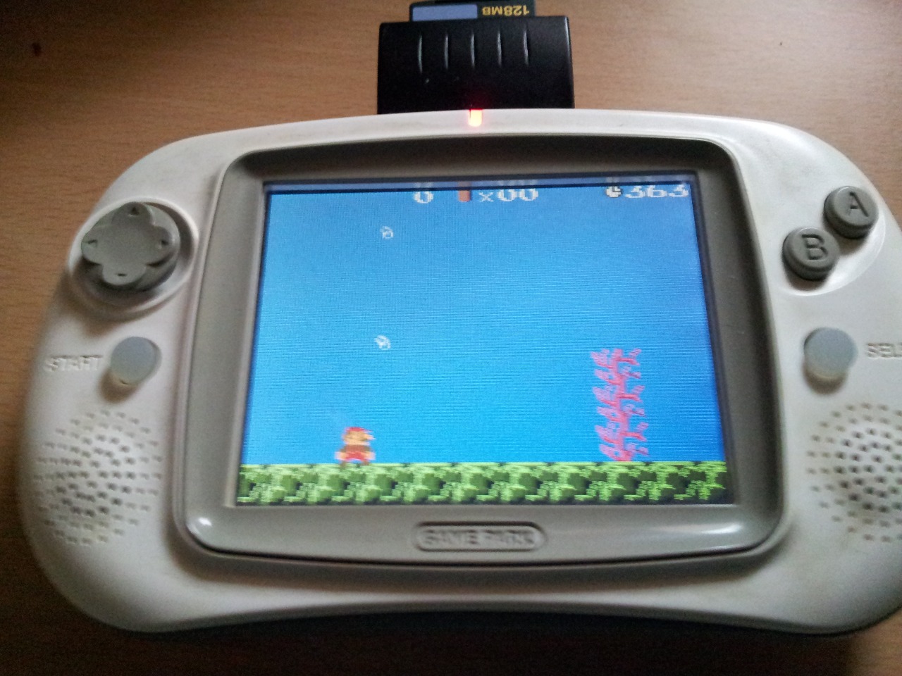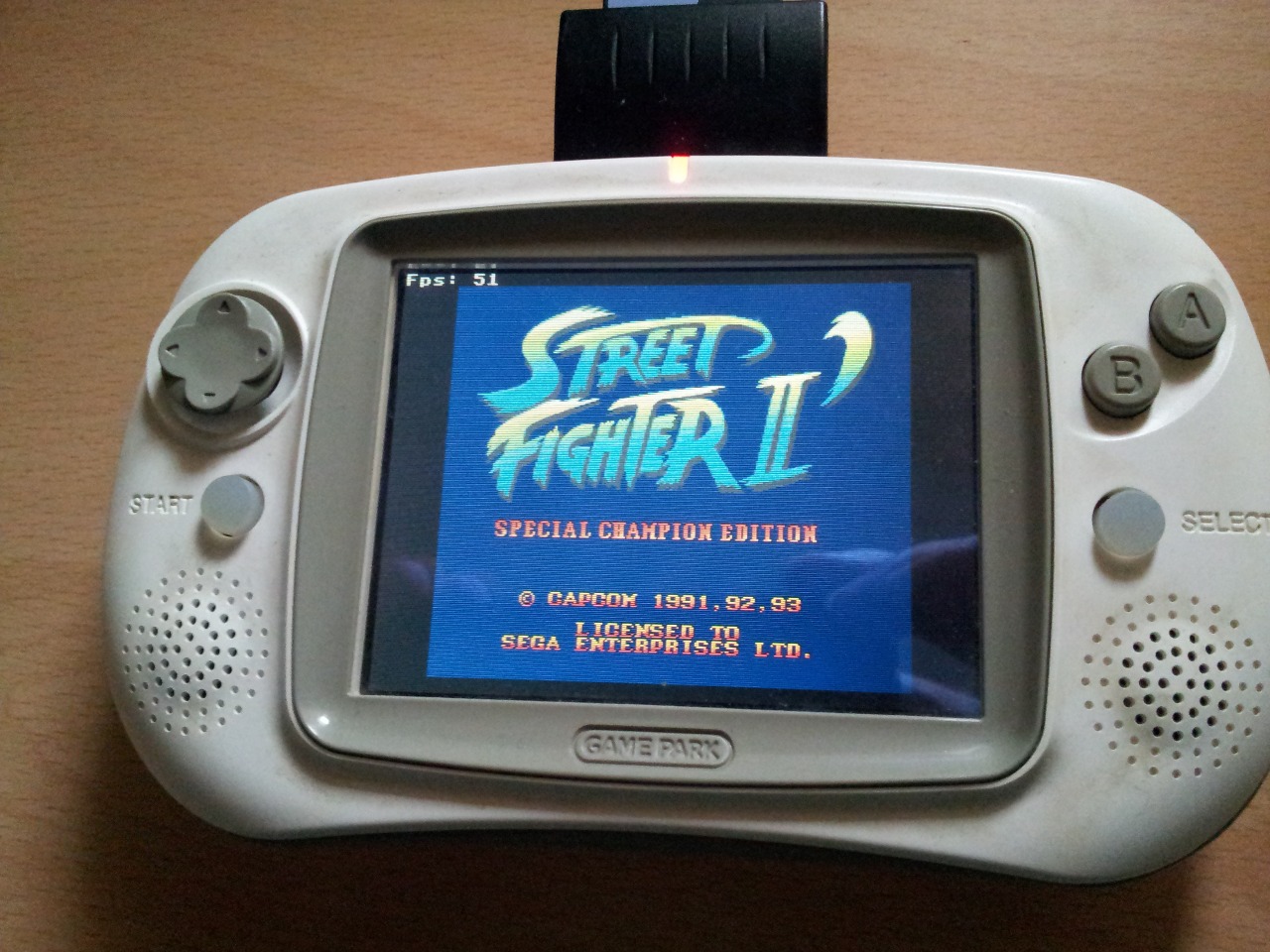 Por fin ha llegado a mis manos una consola portátil que quería trastear desde hace tiempo, la gp32x (gamepark 32).Esta consola portátil es de 32bits, tiene un procesador Arm9 con una potencia de 133mhz,8Mb de Sdram y 512kb de Rom y pantalla de 3,5 pulgadas.Os preguntareis que es lo que hace diferente a las demás consolas portátiles esta maravilla, pues por lo pronto que es de código abierto, modificable y con la que puedes crear tu propio software.Con ella podemos desde ver películas,escuchar mp3, usar un software de pintura, y por supuesto jugar a gran cantidad de juegos.Tiene un catálogo de juegos propios comerciales, puede mover emuladores de ordenadores retro(amiga,spectrum,etc), de nes,gameboy,genesis,snes,clásicos de las recreativas y dicen que hasta algunos juegos de psx(tengo que probarlo). Esta consola utiliza las descatalogadas y dificiles de conseguir tarjetas smc , pero puedes recurrir a un adaptador de tarjetas que convierte las smc a XD (fujifilm) que son más baratas y asequibles en el mercado(puedes ver como se queda en la imágen).Bueno os dejo una imágen de como se ve el supermario y el Street Fighter 2.